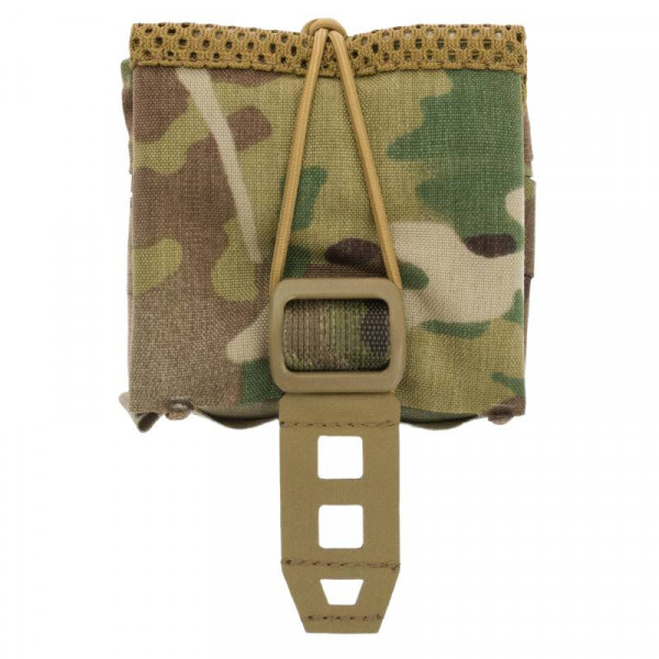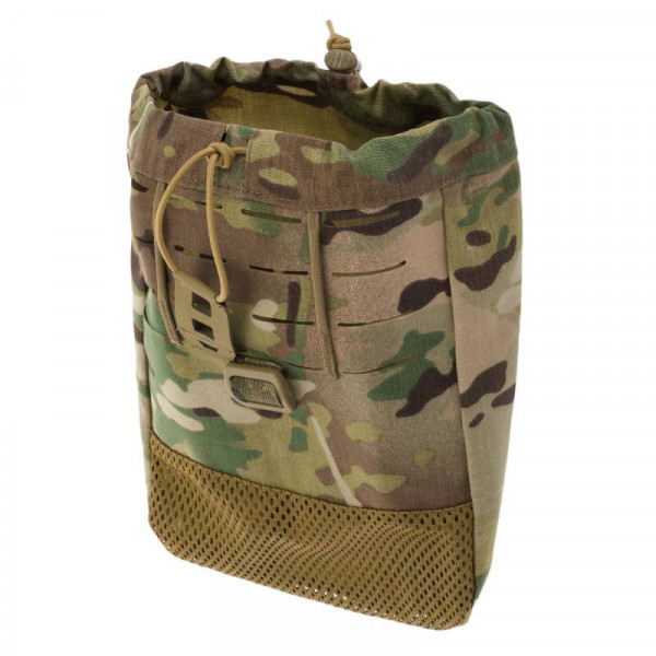 Classic foldable dump pouch designed to quickly stash empty magazines or other essential gear. It rolls neatly into a compact, low-profile bundle and deploys instantly with a firm one-handed pull on the extended Hypalon tab. The Bottom is made of mesh for drainage and debris, top can be tightened with the shockcord.